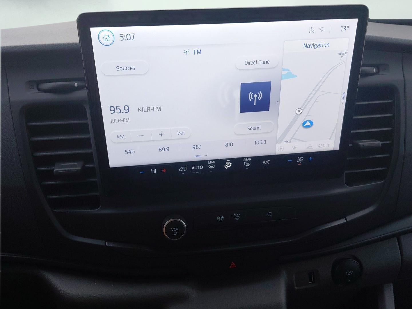 - Radio: AM/FM Stereo w/SYNC 4 -inc: 12" multi-function display, Bluetooth®, dual USB ports, embedded voice recognition, connected navigation w/3 years of service available through Ford Pro Intelligence, 4 speakers (front), Ford commercial solutions energy management and vehicle insight tools (access to the Ford charge network, public charging account setup and management, driver public charging tools, home charging reimbursement, Ford E-Telematics dashboard and connected navigation) included for commercial and business customers complimentary for 1 year
