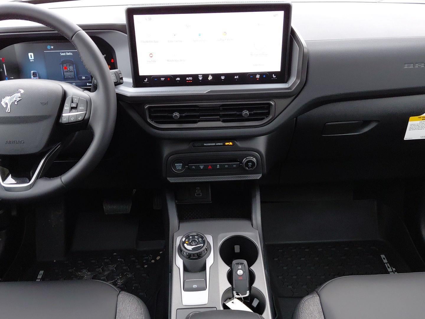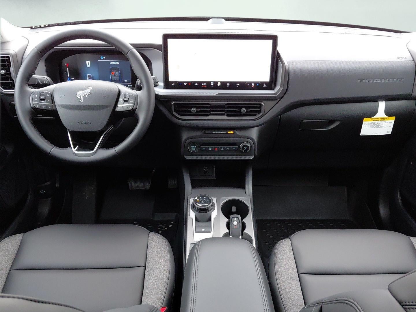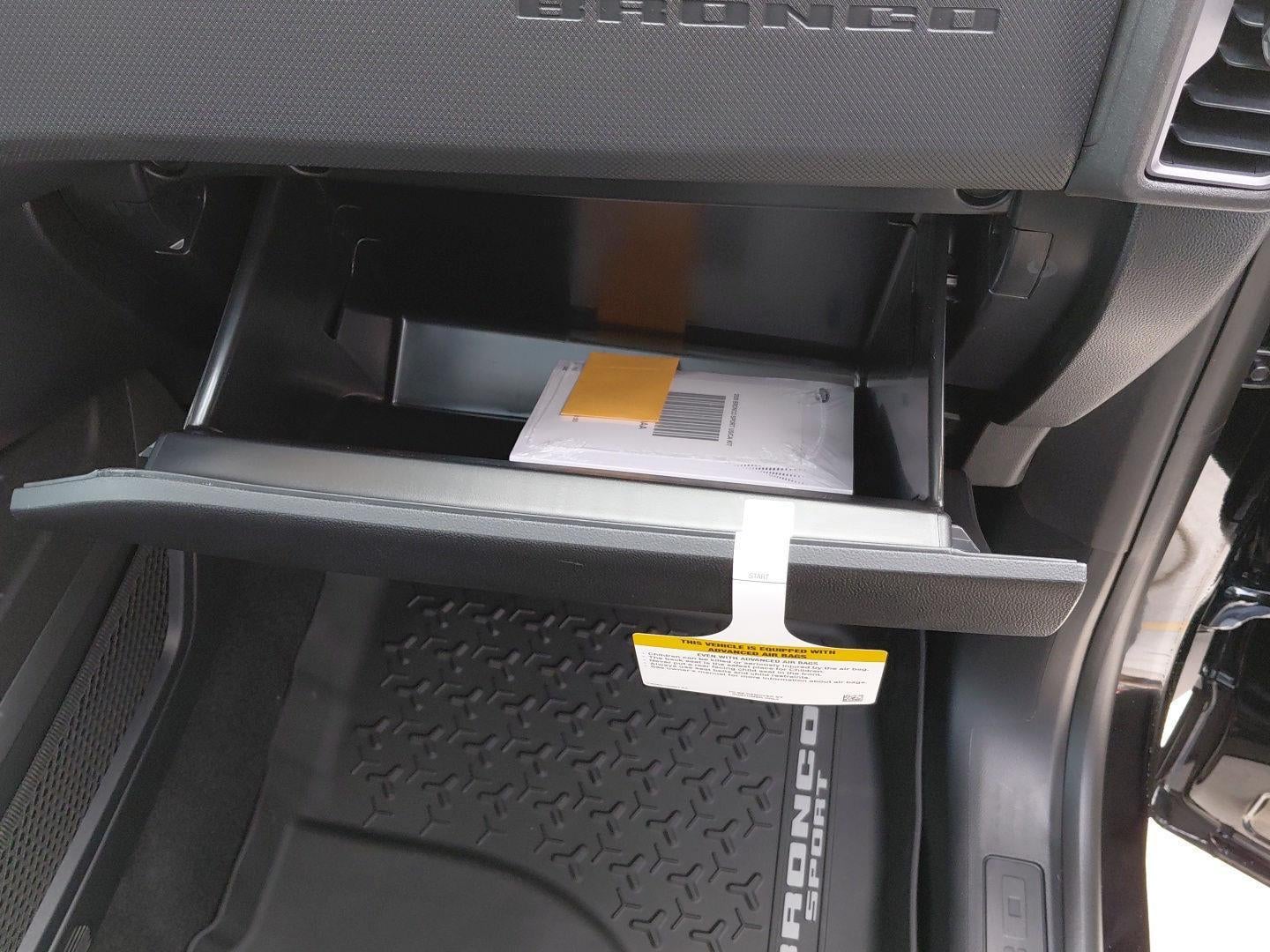 - Includes cargo mat, front and rear floor liners (without carpet mats), textured matte black hood graphic, Carbon Black grille with black painted Bronco lettering, painted shadow black roof, premium-trimmed front sport contour bucket seats, front driver/passenger seat back map pockets, unique badges with black accents, 17 inch matte black-painted aluminum wheels, 225/65R17 102H all-season tires, and black painted Bronco Sport lettering.