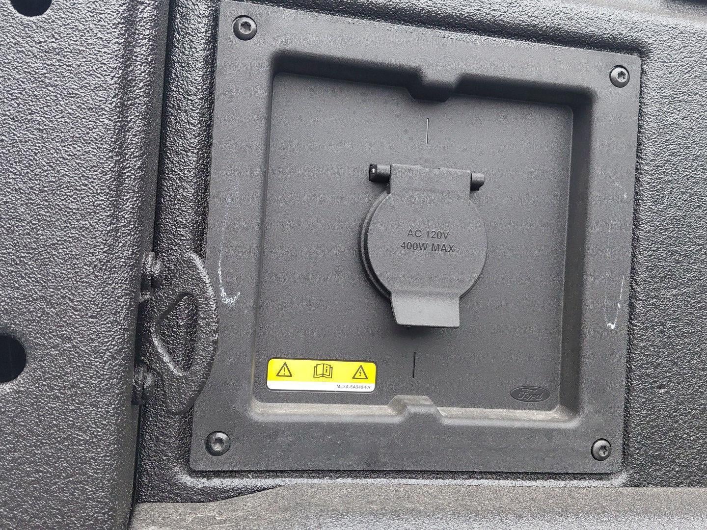 - Includes interior work surface, wireless charging pad, 110V/400W outlet in the instrument panel and pickup bed, and partitioned lockable fold-flat storage.
