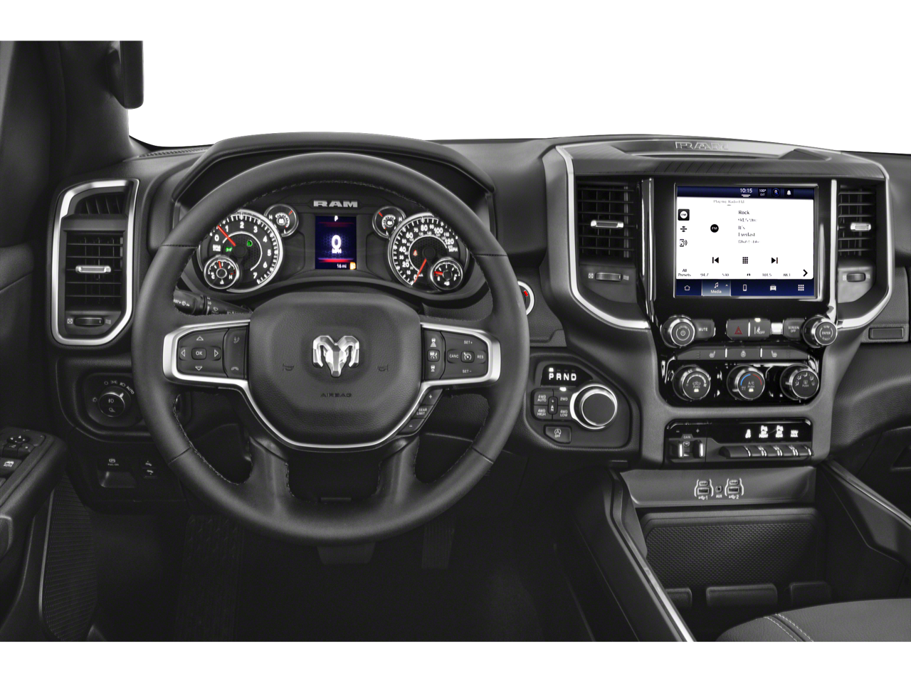 Diamond Black Crystal Pearlcoat 2025 Ram 1500 Big Horn/Lone Star 4WD 8-Speed Automatic 3.0L I6 115V Auxiliary Power Outlet, 115V Auxiliary Rear Power Outlet, 12 Touchscreen Display, 2nd Row In Floor Storage Bins, 3 Rear Seat Head Restraints, 4 Way Front Headrests, 400W Inverter, 4G LTE Wi-Fi Hot Spot, 9 Amplified Speakers w/Subwoofer, Accent Color Door Handles, Accent Color Premium Power Mirrors, Accent Color Tailgate Handle, Air Conditioning ATC w/Dual Zone Control, Anti-Spin Differential Rear Axle, Apple CarPlay, Auto Power-Folding Mirrors, Auto-Dimming Exterior Driver Mirror, Auto-Dimming Rear-View Mirror, Bed Utility Group, Big Horn Level 2 Equipment Group, Black Exterior Mirrors, Black Exterior Truck Badging, Black Headlamp Bezels, Black Interior Accents, Black Painted Exterior Mirrors Caps, Black Premium Power Mirrors, Black Tail Lamp Bezels, Body Color Front Bumper, Body Color Rear Bumper w/Step Pads, Bucket Seats, Cluster 7.0 TFT Color Display, Configurable Drive Mode, Connected Travel & Traffic Services, Connectivity - US/Canada, Convex Wide-Angle Exterior Mirror Insert, Deluxe Cloth Bucket Seats, Exterior 115V AC Outlet, Exterior Mirrors Courtesy Lamps, Exterior Mirrors w/Heating Element, Exterior Mirrors w/Supplemental Signals, Front Seat Back Map Pockets, Full Length Floor Console, Glove Box Lamp, Google Android Auto, GPS Antenna Input, GPS Navigation, Grille Black Surround Black Mesh, HD Radio, Heated Front Seats, Heated Steering Wheel, Integrated Voice Command w/Bluetooth®, Leather Wrapped Steering Wheel, LED Dome Lamp w/On/Off Switch, LED Footwell Lighting, Manual Adjust 4-Way Front Passenger Seat, Media Hub w/2 Charge Only USBs, MOPAR 4 Adjustable Cargo Tie-Down Hooks, MOPAR Spray In Bedliner, Night Edition, Overhead LED Lamps, Pick-Up Box Lighting, Power 2-Way Driver Lumbar Adjust, Power Adjust 8-Way Driver Seat, Power Adjustable Pedals, Premium Overhead Console, Quick Order Package 21Z Big Horn, Radio: Uconnect 5 Nav w/12.0 Display, RAM Grille Badge - Black, Rear 60/40 Folding Seat, Rear Center Armrest, Rear Power Sliding Window, Rear Window Defroster, Remote Tailgate Release, Security Alarm, SiriusXM w/360L, Steering Wheel Mounted Audio Controls, Sun Visors w/Illuminated Vanity Mirrors, Universal Garage Door Opener, USB Host Flip, Wheels: 20 x 9.0 Aluminum Painted Clad.